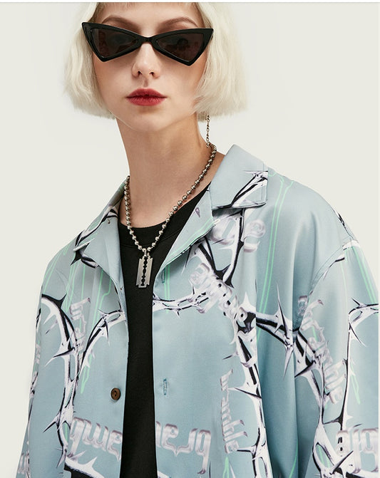 Collision Elements Print Sexy Navel Streetwear Cardigan Tops