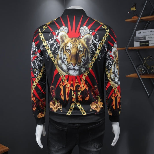 Luxury Gold Print Bomber Jacket Men Streetwear Social Men