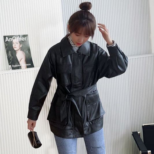 Women's Leather Jacket Locomotive Style Leather Coat Leather Jacket